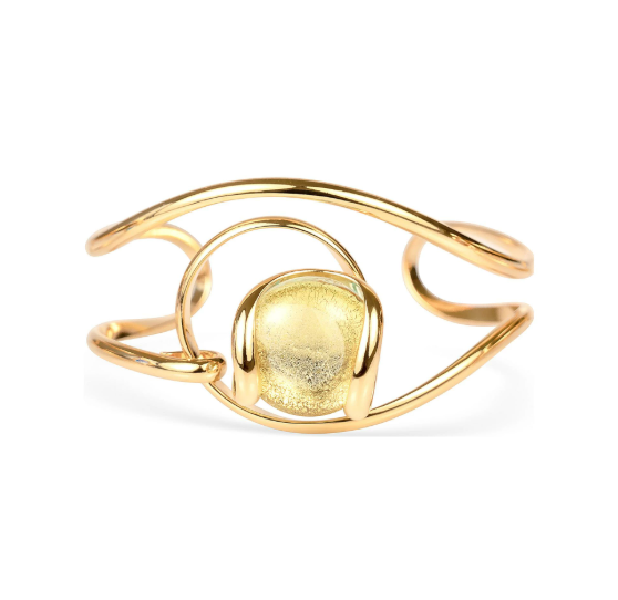 Bracelet Andréa Marazzini, en laiton plaqué doré, avec verre de murano vert irisé, taille ajustable