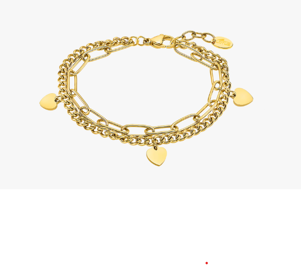 Bracelet Lotus Style double chaîne, en acier inoxydable doré, avec breloques en forme de cœur.