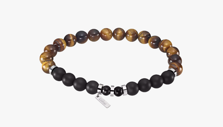 Bracelet Lotus Style en acier inoxydable avec 8 boules de résines noires et 16 marrons.