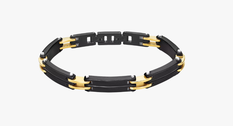 Bracelet Lotus Style, Men In Black en acier inoxydable laqué noir et doré.
