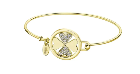 Bracelet Lotus Style, collection Millennial, en acier inoxydable doré, motif trèfle 4 feuilles.