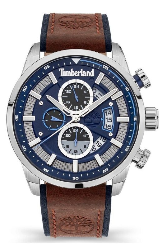 Montre Timberland pour homme en cuir marron avec un boîtier de 46mm. Mouvement Quartz.
