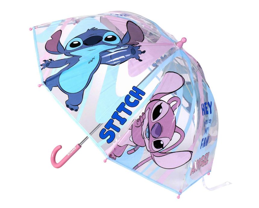 Parapluie transparent pour enfant à l’égérie de Stitch et sa copine Angel. Ouverture manuel et simple. Dimensions : 5.0 X 5.0 X 64.0 CM
