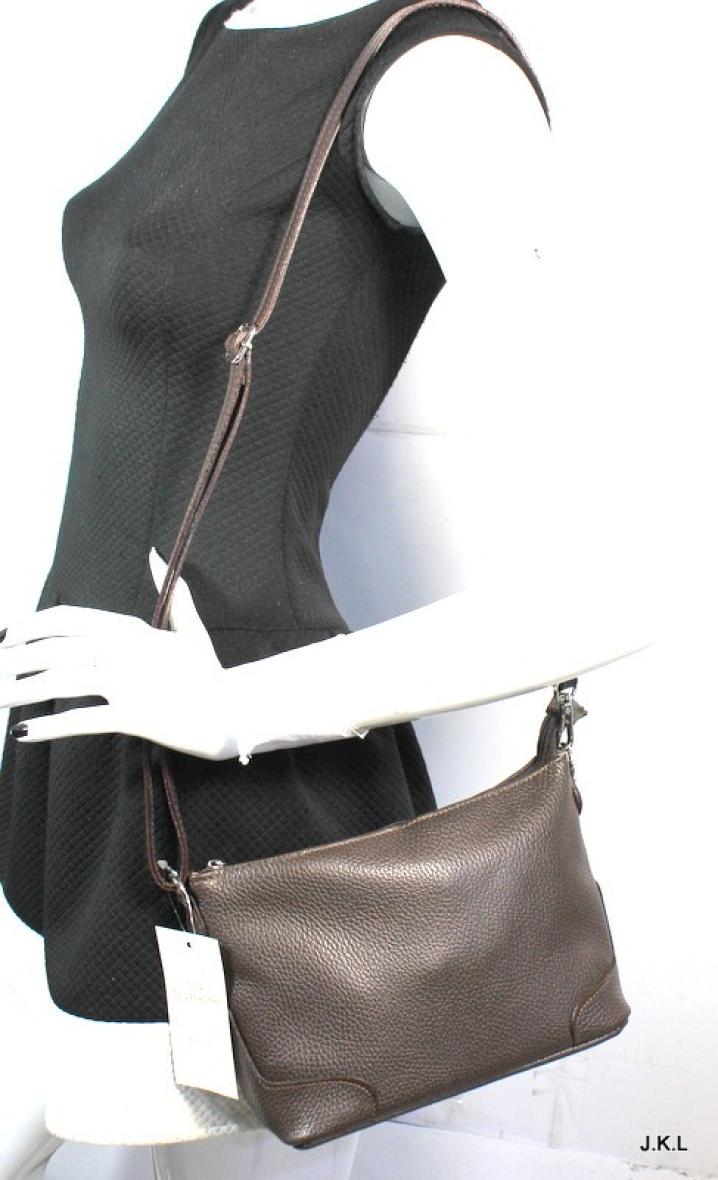 Petit sac en bandoulière en cuir grainé avec poche zippé au dos. Disponible en plusieurs coloris.
