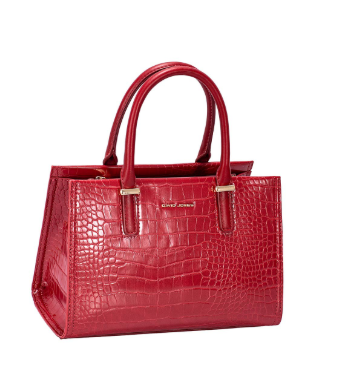 Sac à main cabas, effet croco rouge, David Jones avec une bandoulière. Dimensions : L 26 × H 18 × P 12 cm